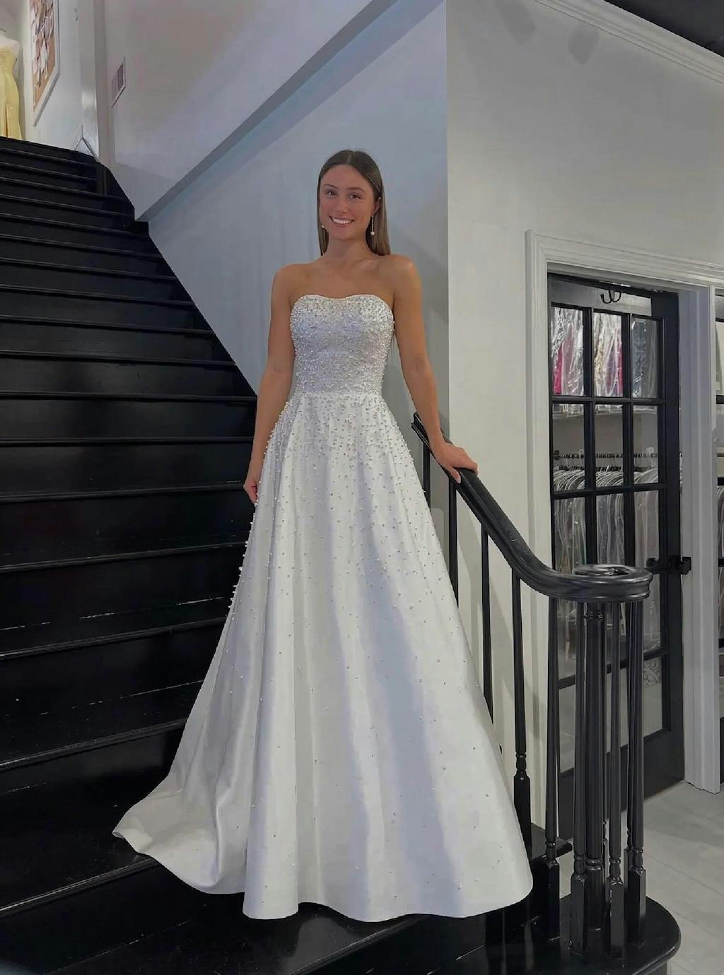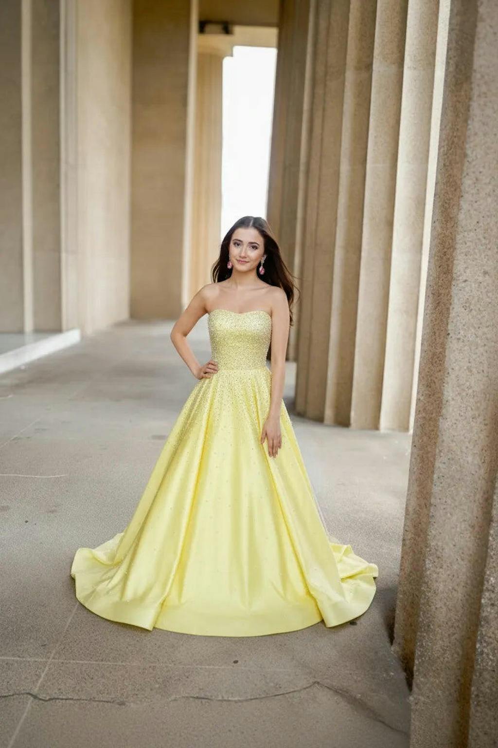 This dress photographed unbelievably well. The colors are soft and romantic, and the sparkle on the bodice really popped under lights. Definitely one of my favorite looks.