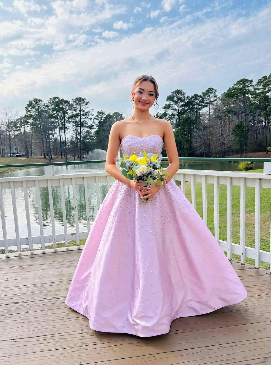This dress is absolutely beautiful! The candy pink shade is sweet and romantic, exactly what I wanted for my photoshoot. Highly recommend!