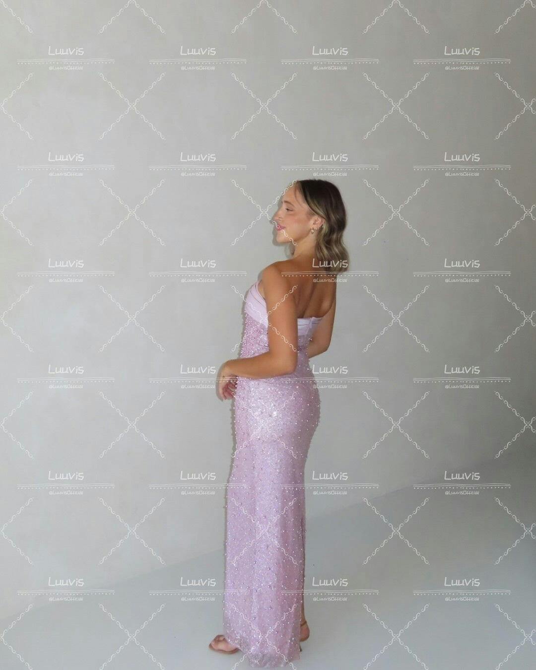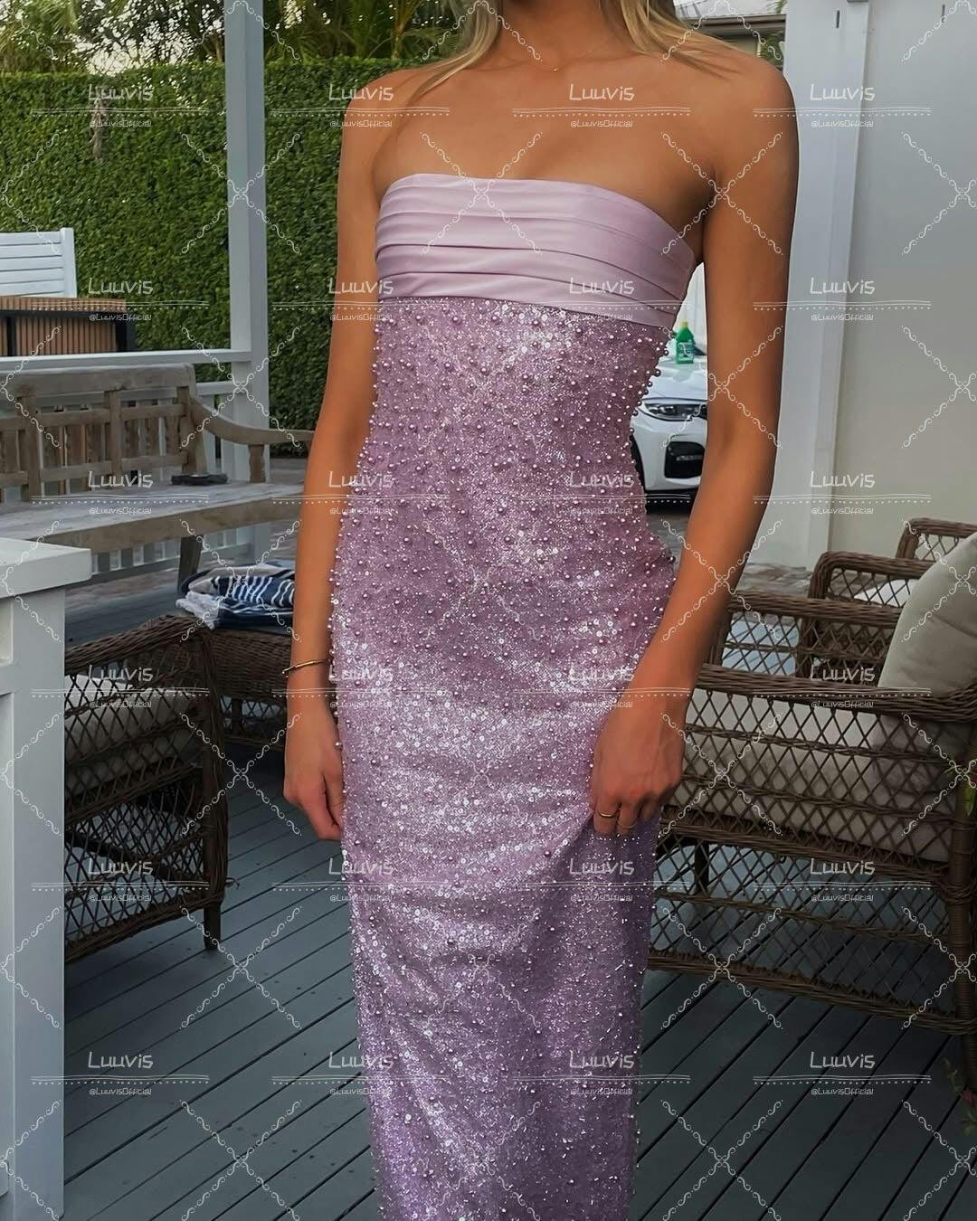 Bling Sheath Strapless Lilac Long Prom Dress with Pearls