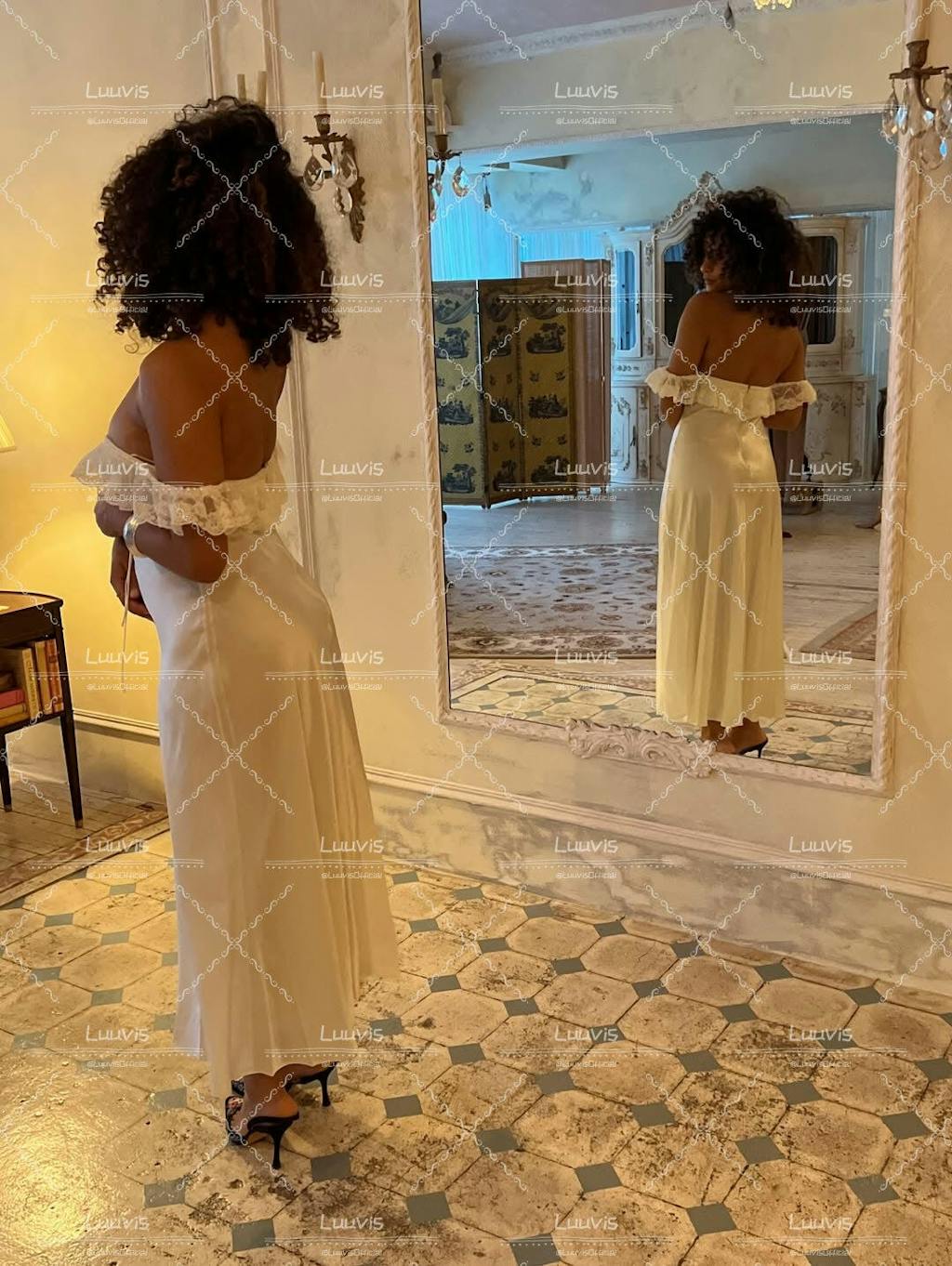 Charming A Line Off the Shoulder White Tea Length White Party Dress with Lace