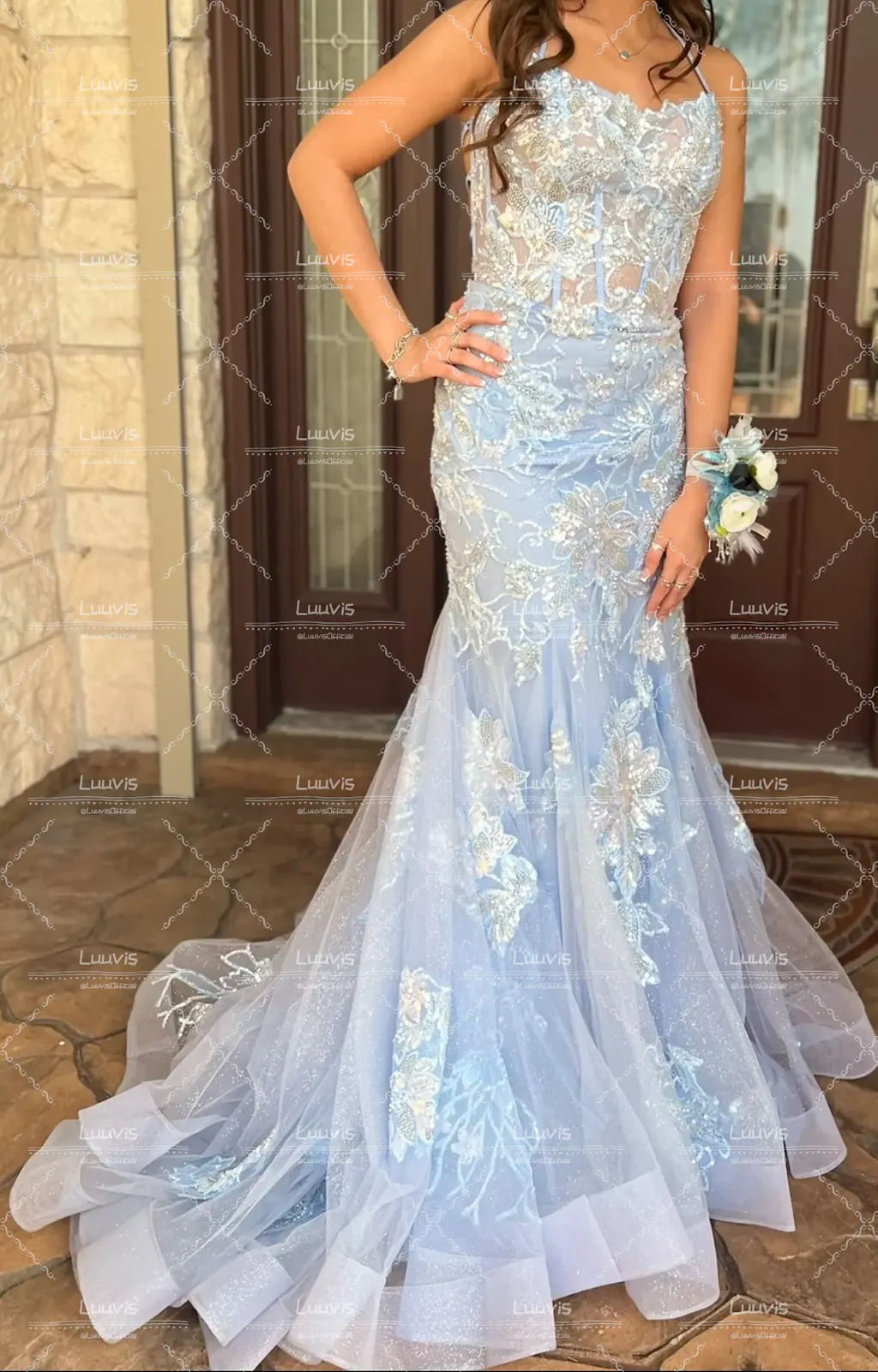 Charming Glitter Mermaid Lace Up Back Long Prom Dress With Appliques