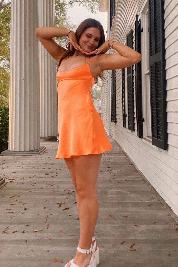 Chic A Line Spaghetti Straps Orange Short Homecoming Dress with Criss Cross Back