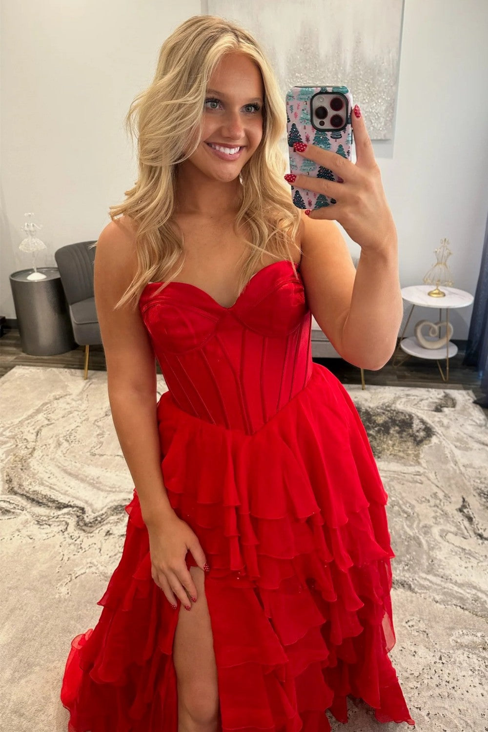 Elegant A Line Sweetheart Black Corset Prom Dress with Ruffles