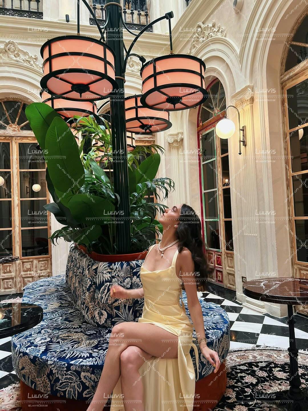 Elegant Sheath Square Neck Yellow Long Prom Dress with Criss Cross Back