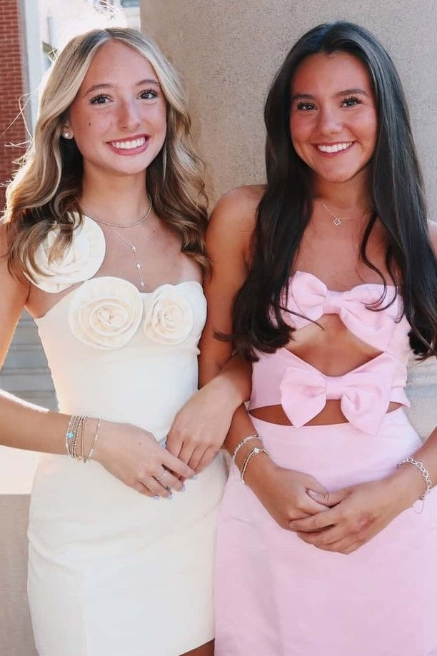 Fashionable Sheath One Shoulder Light Yellow Short Homecoming Dress with 3D Flowers