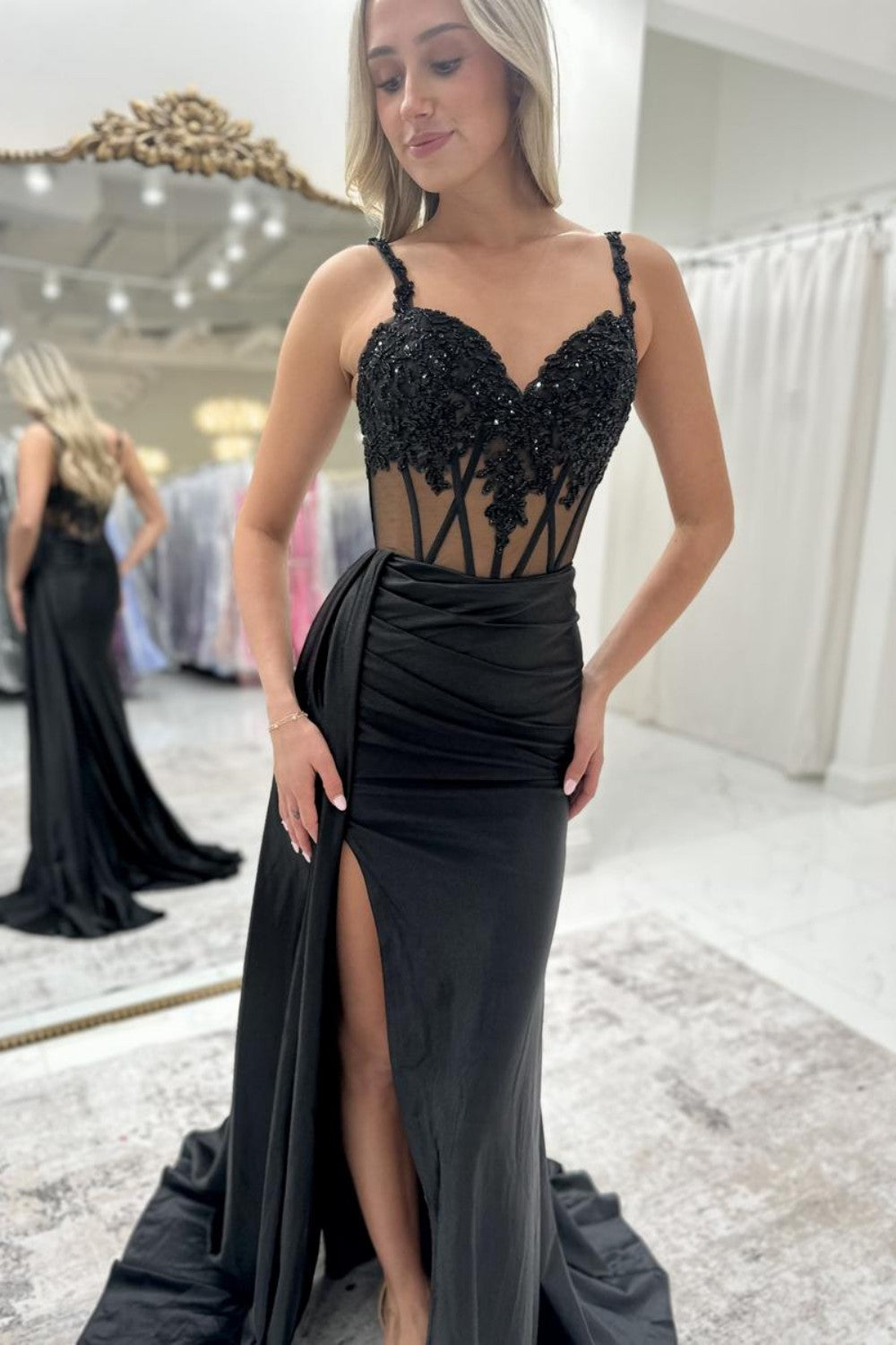 Gorgeous Mermaid Spaghetti Straps Royal Blue Corset Prom Dress with Appliques