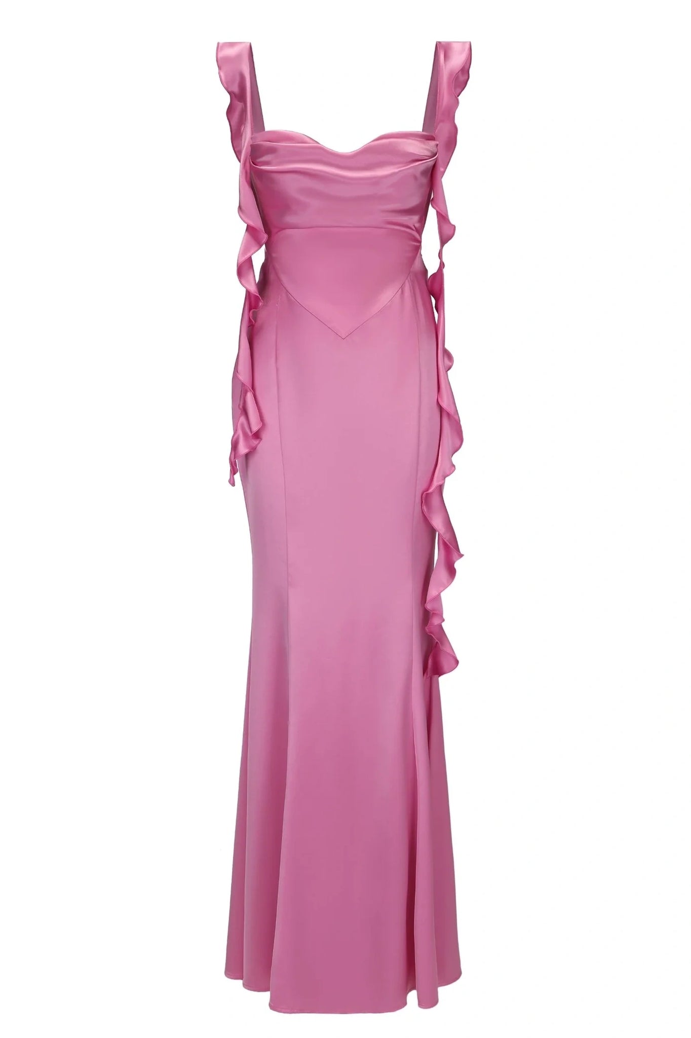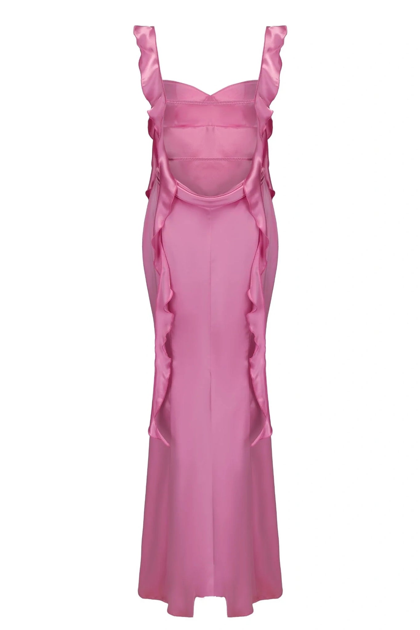 Lovely Mermaid Sweetheart Pink Long Prom Dress with Backless Ruffles