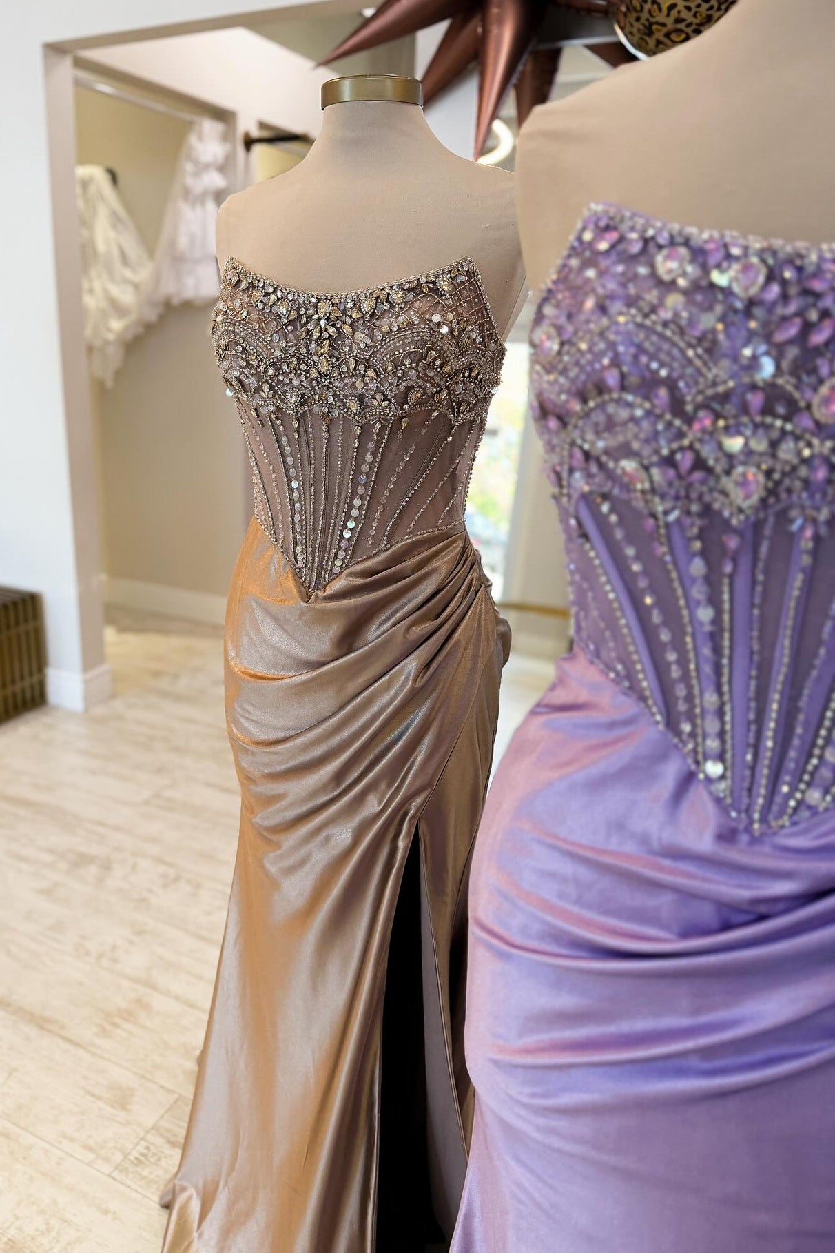Whether you choose a standard size or custom measurements, our tailors craft each dress to order.