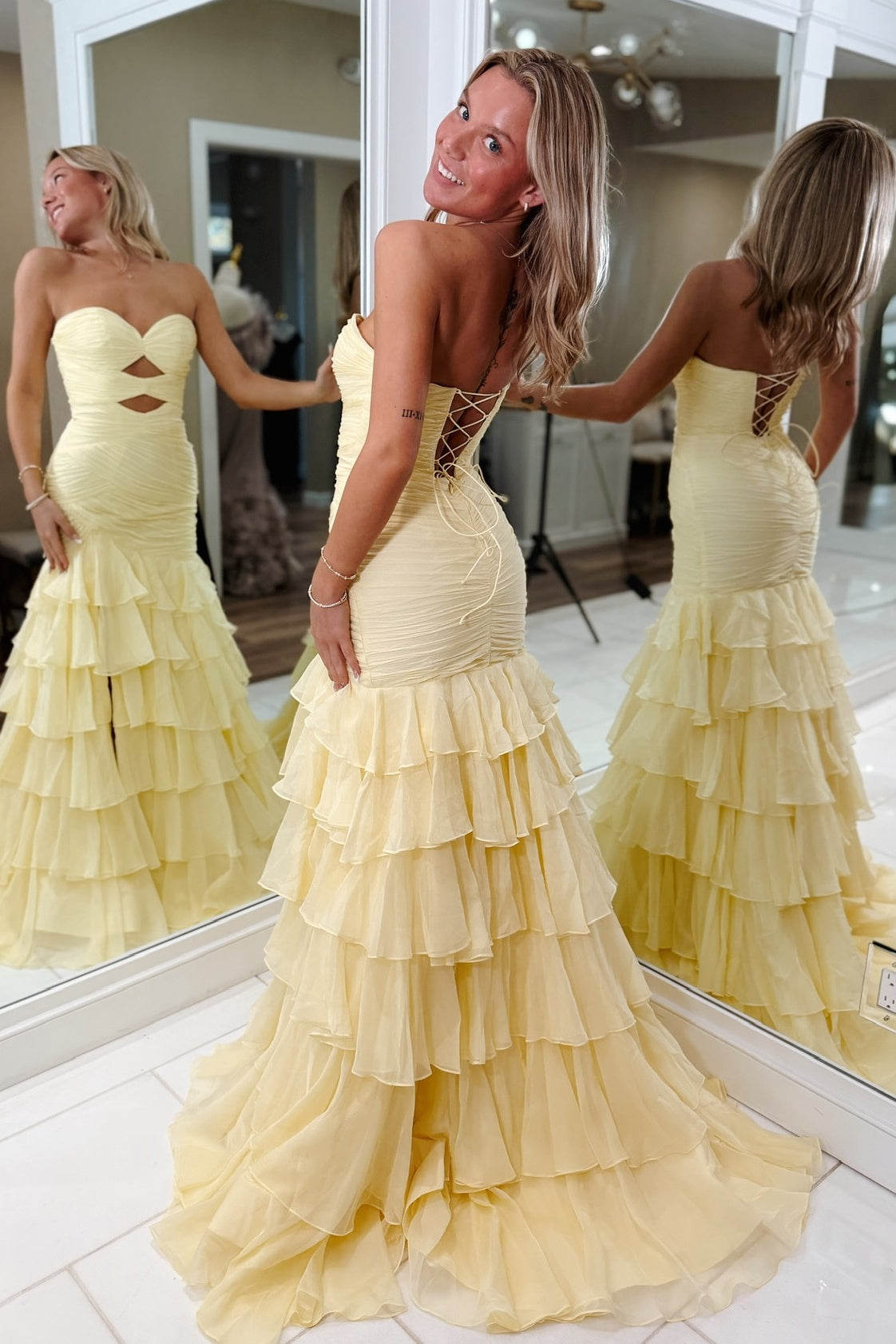 Pretty Mermaid Sweetheart Yellow Long Prom Dress with Ruffles