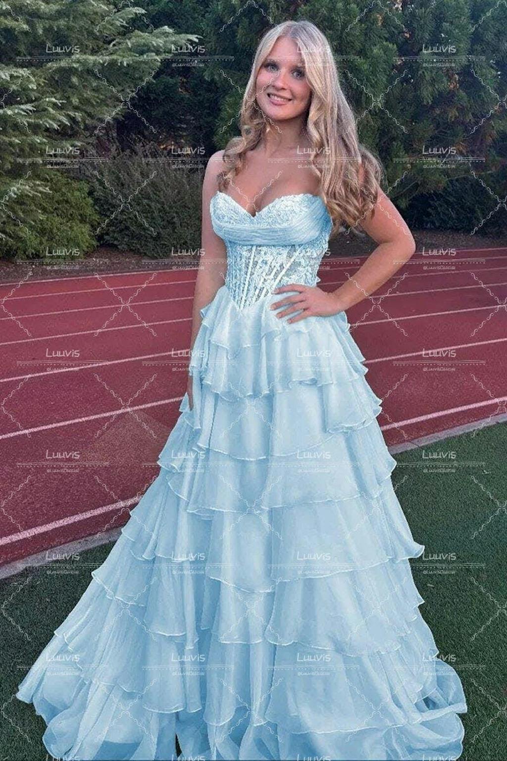 Princess A Line Sweetheart Pink Corset Prom Dress with Appliques Ruffles