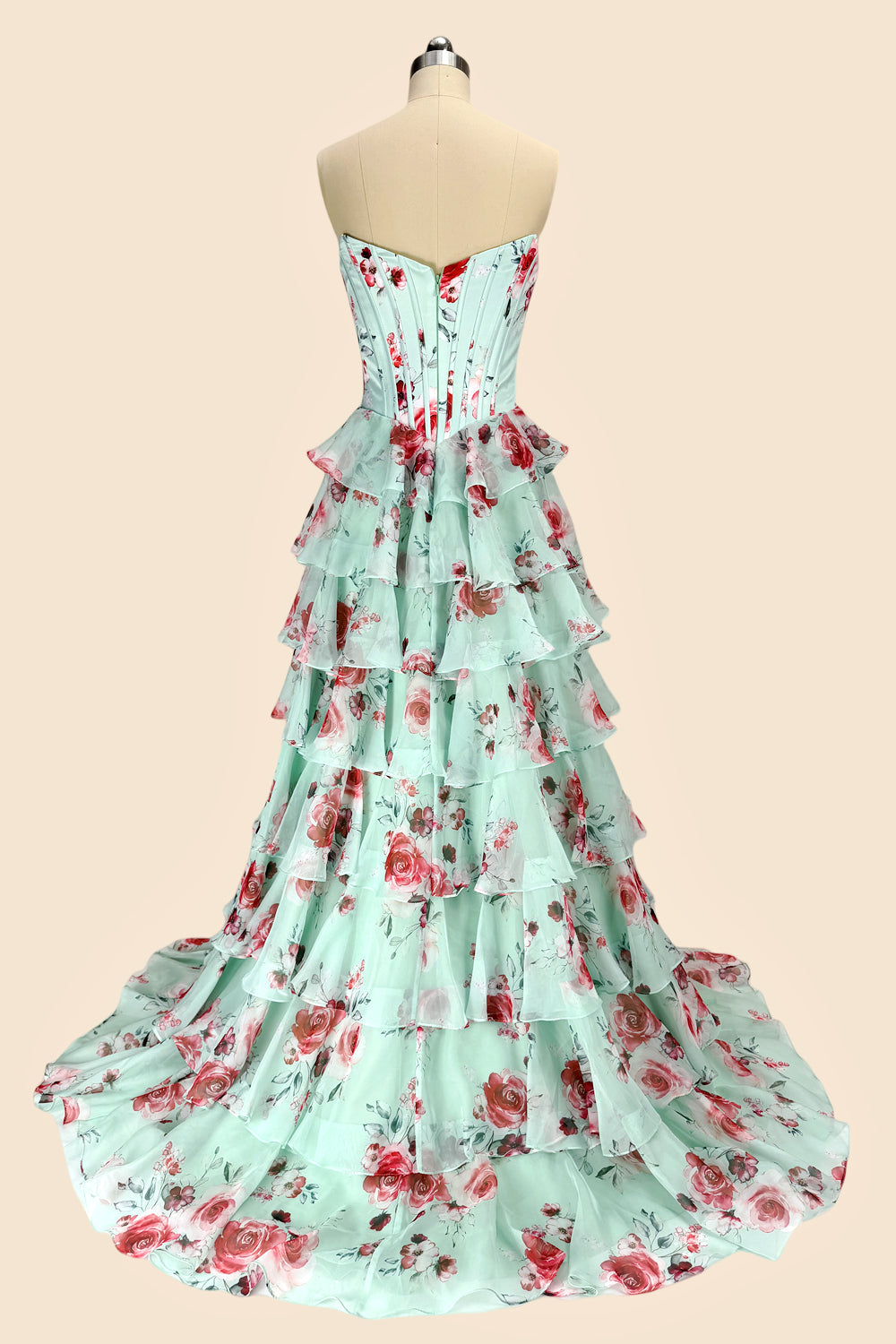 Sweety A Line Sweetheart Floral Print Mint Green Corset Prom Dress with Layered Skirt