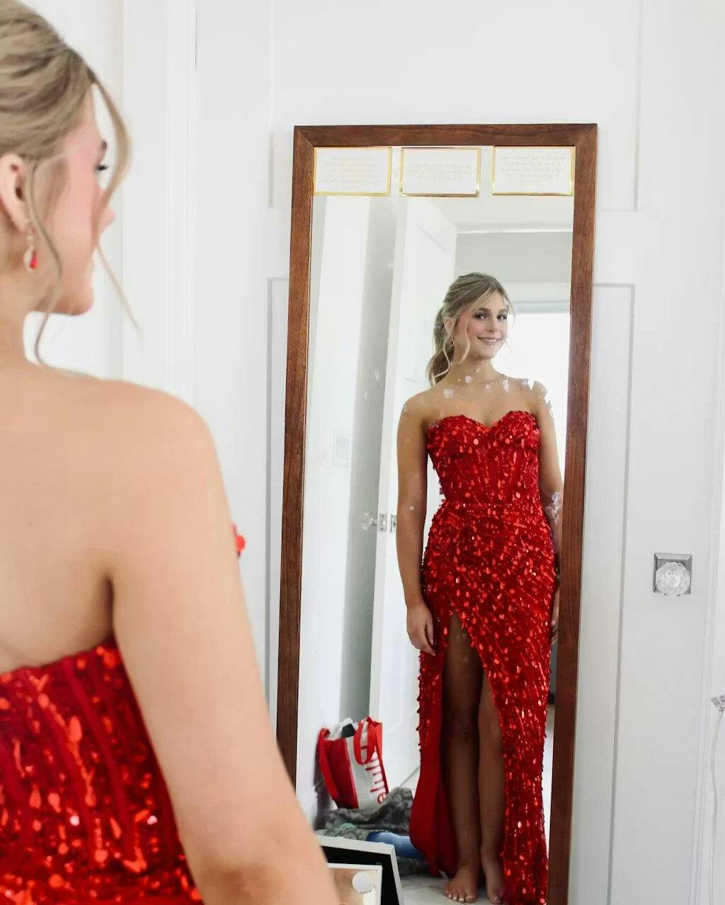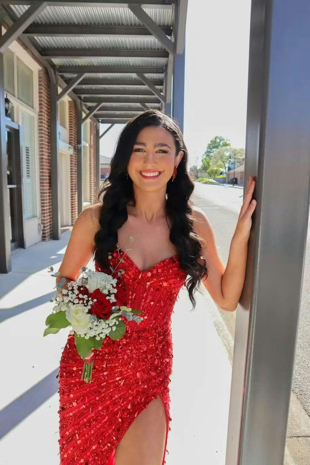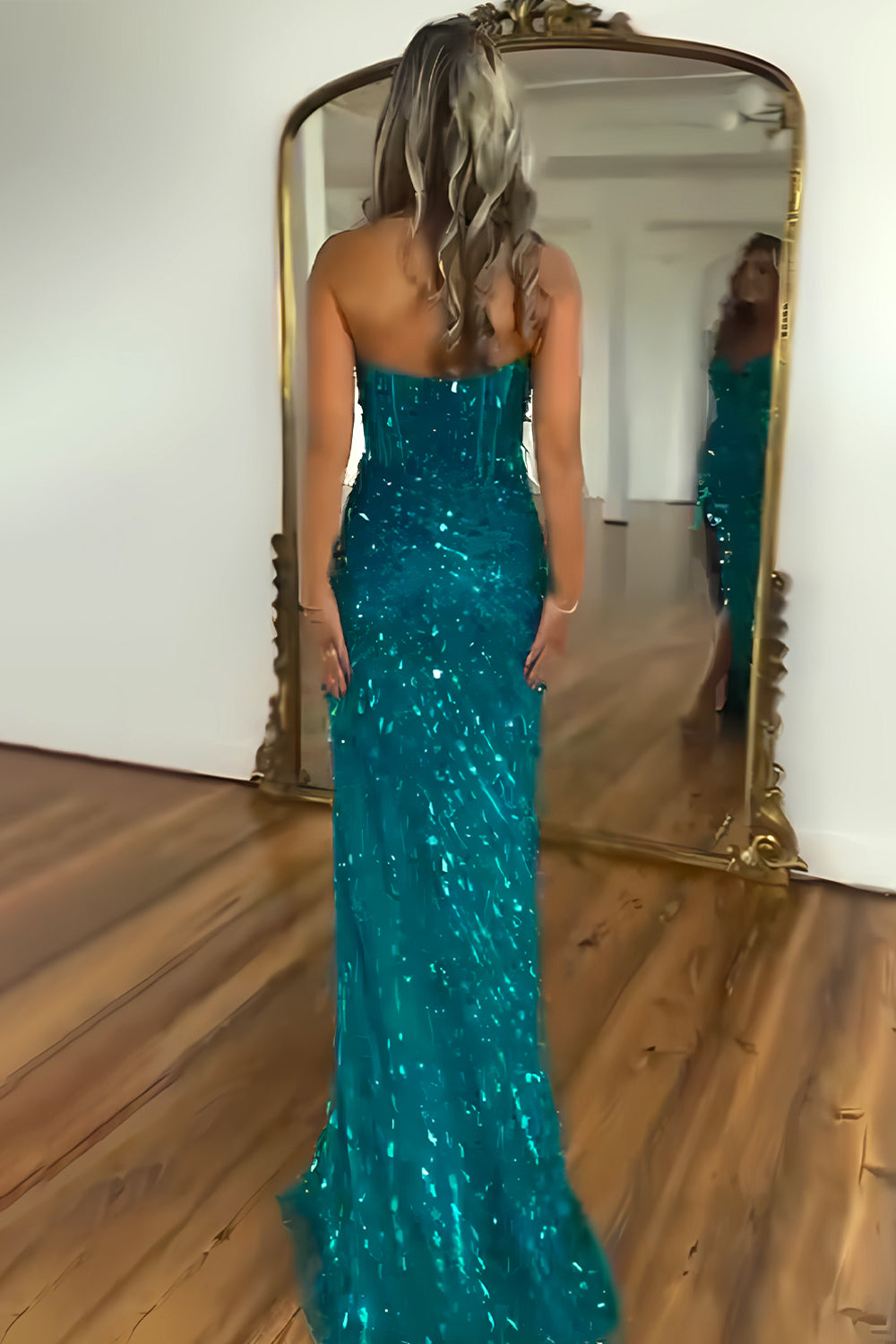 Sparkly Mermaid Sweetheart Gold Long Prom Dress with Split Front