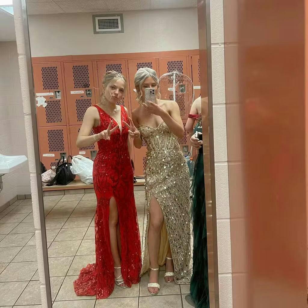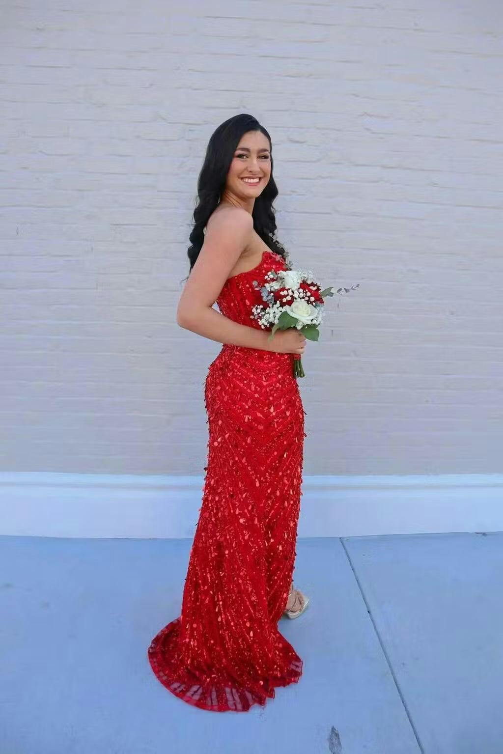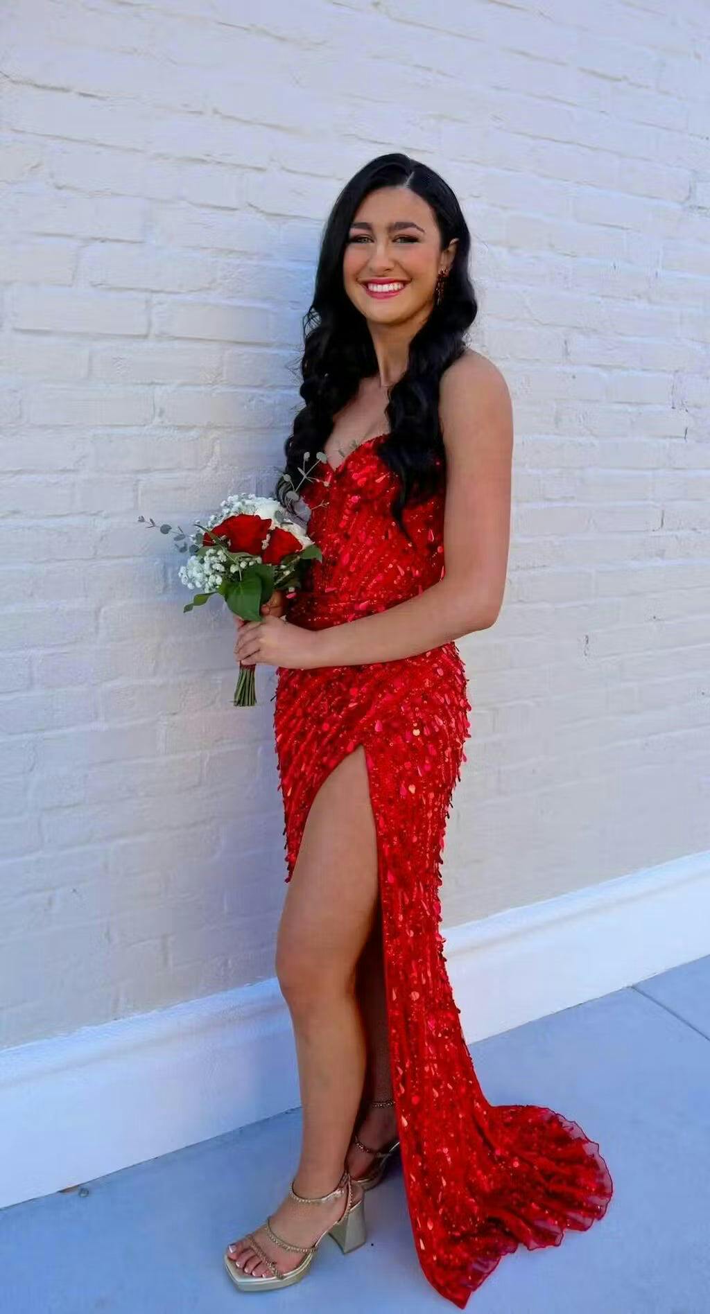 Sparkly Mermaid Sweetheart Gold Long Prom Dress with Split Front