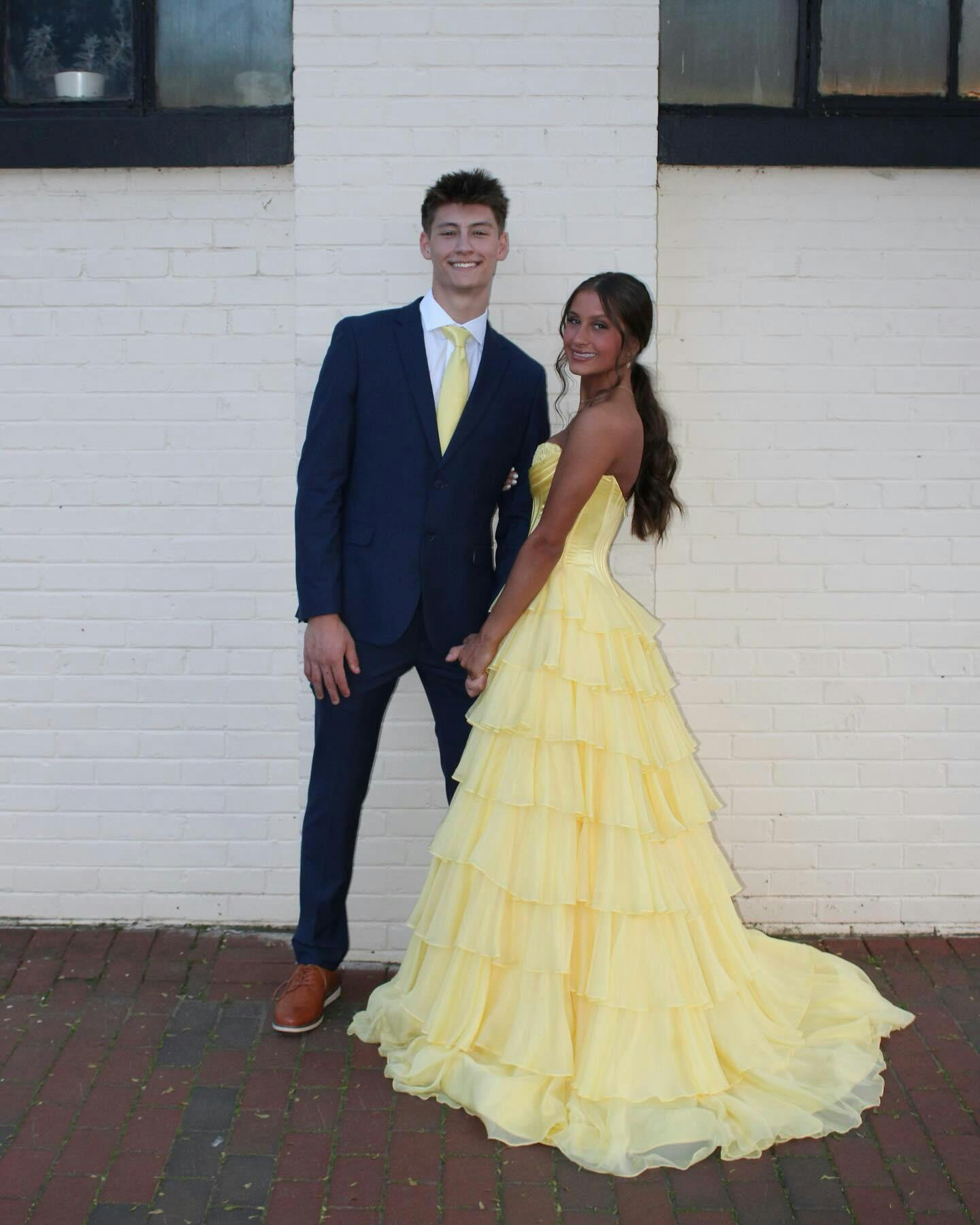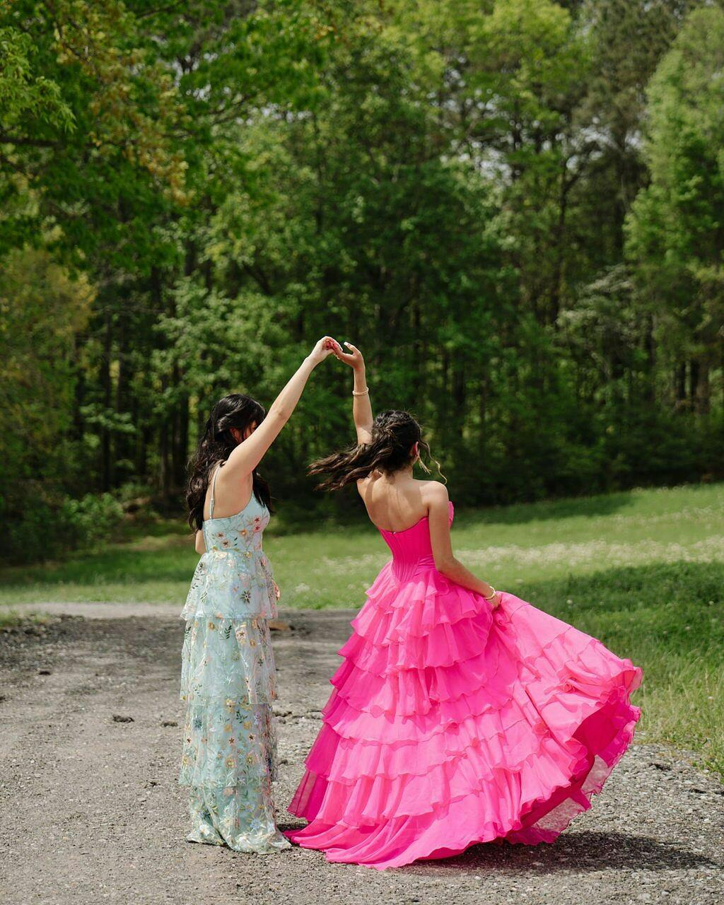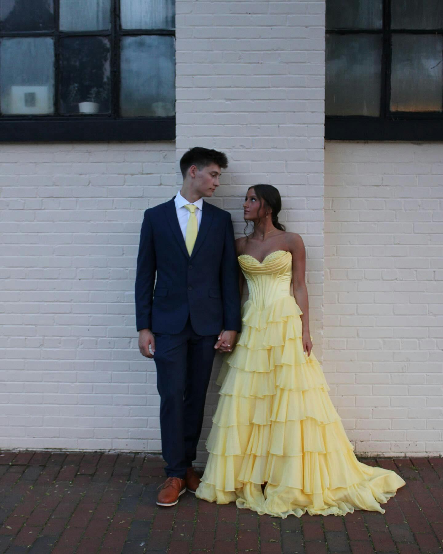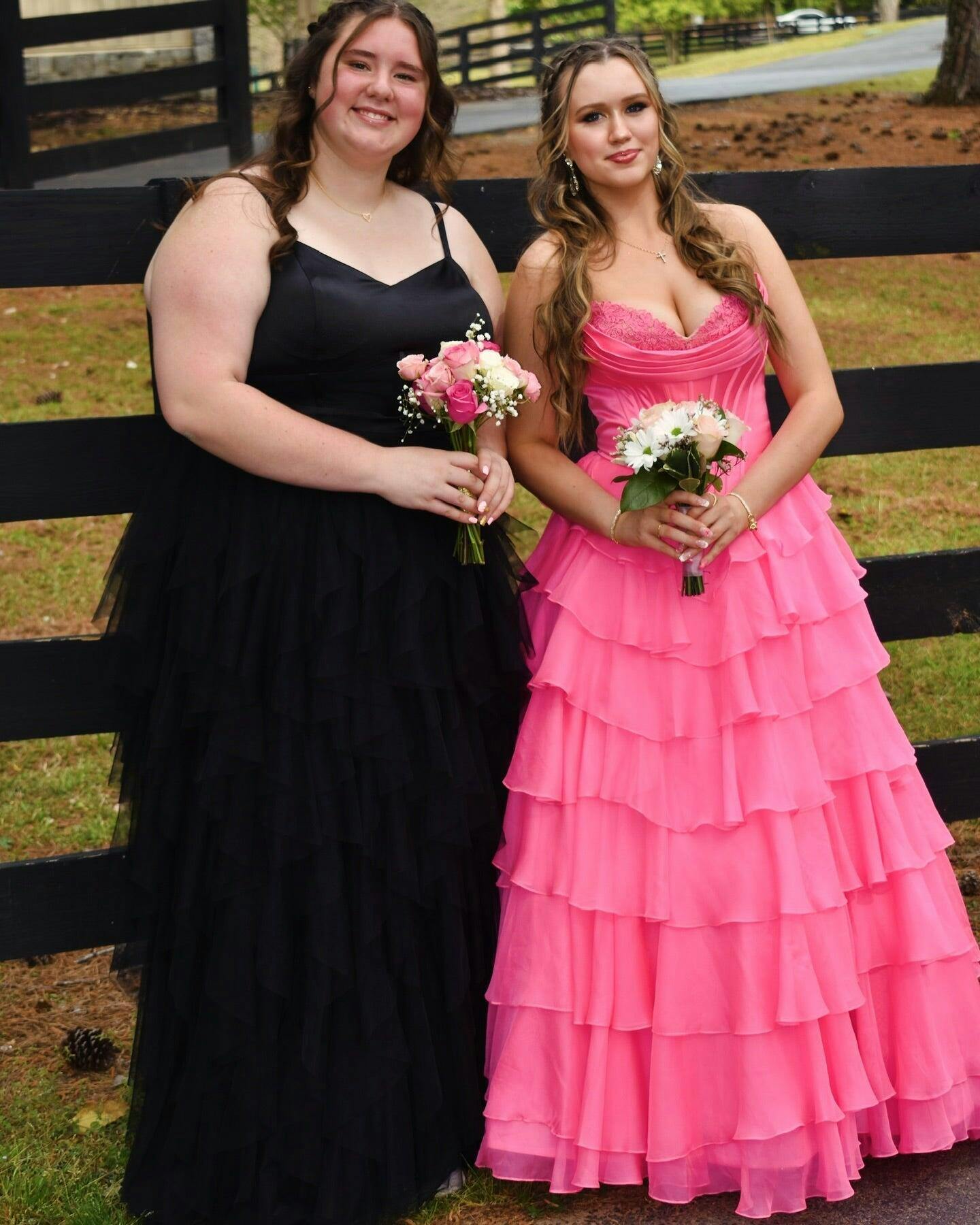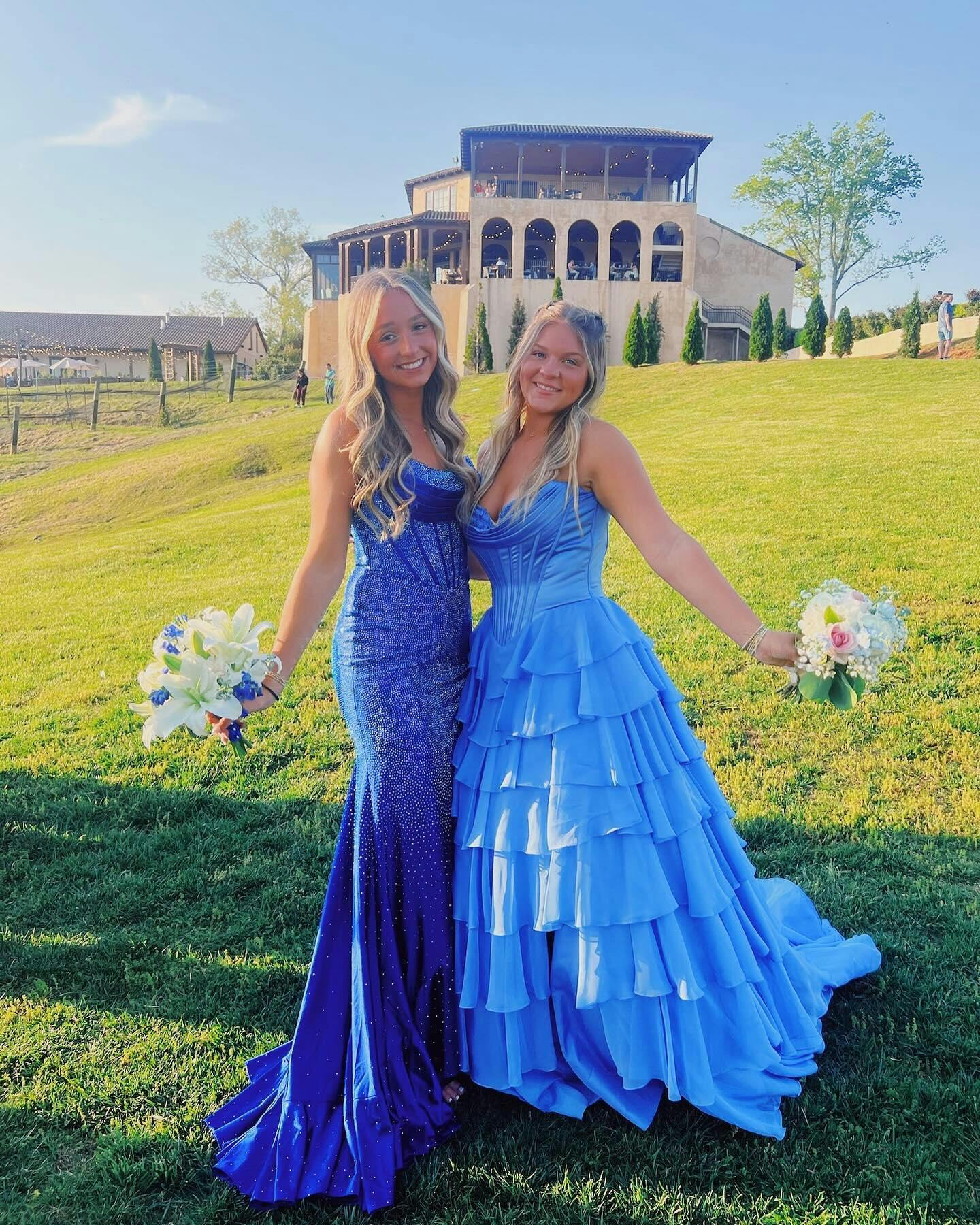 Stunning A-Line Sweetheart Satin Top Long Tiered Chiffon Prom Dress with Slit