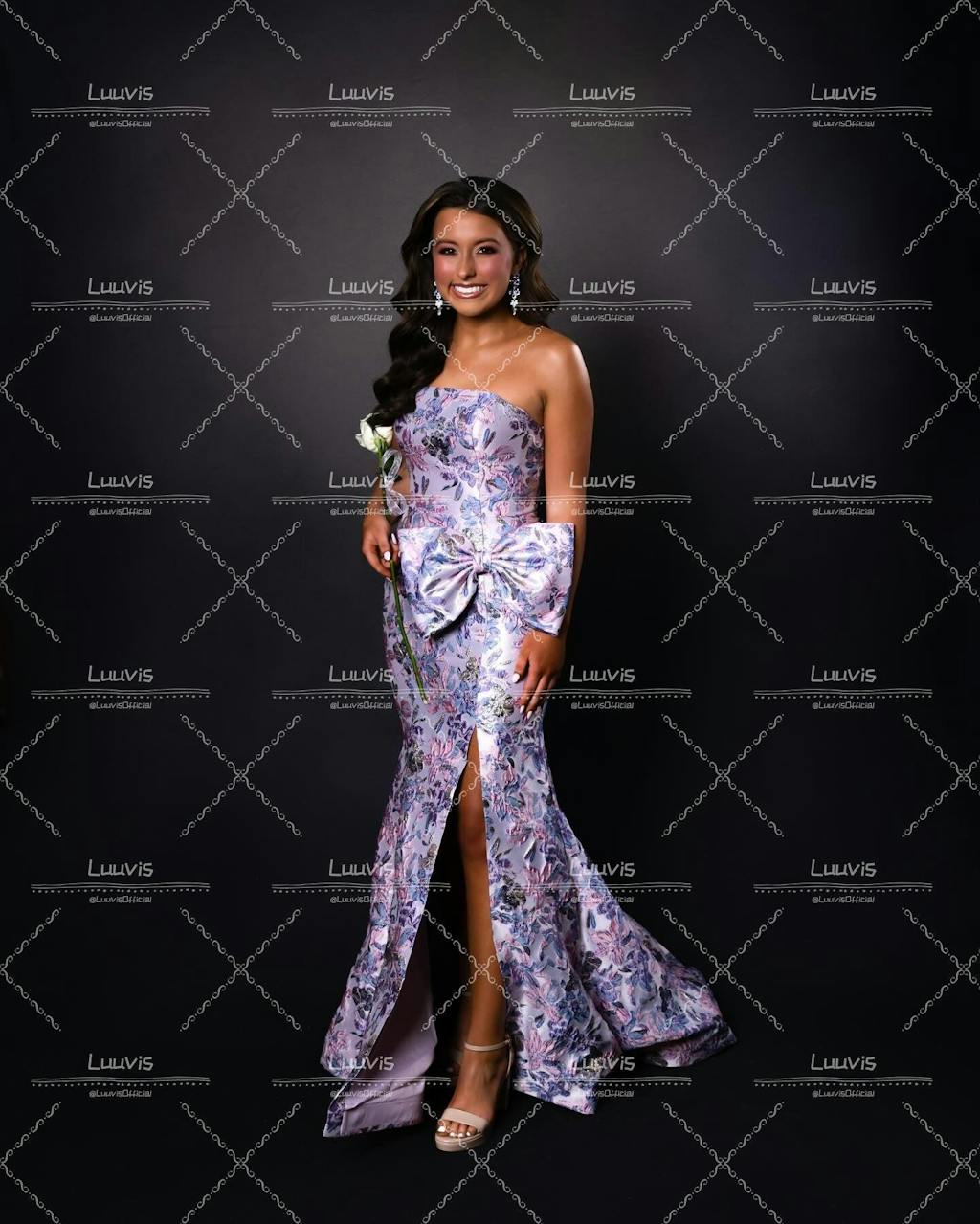 Stunning Mermaid Strapless Pink Floral Printed Long Prom Dress with Bowknot