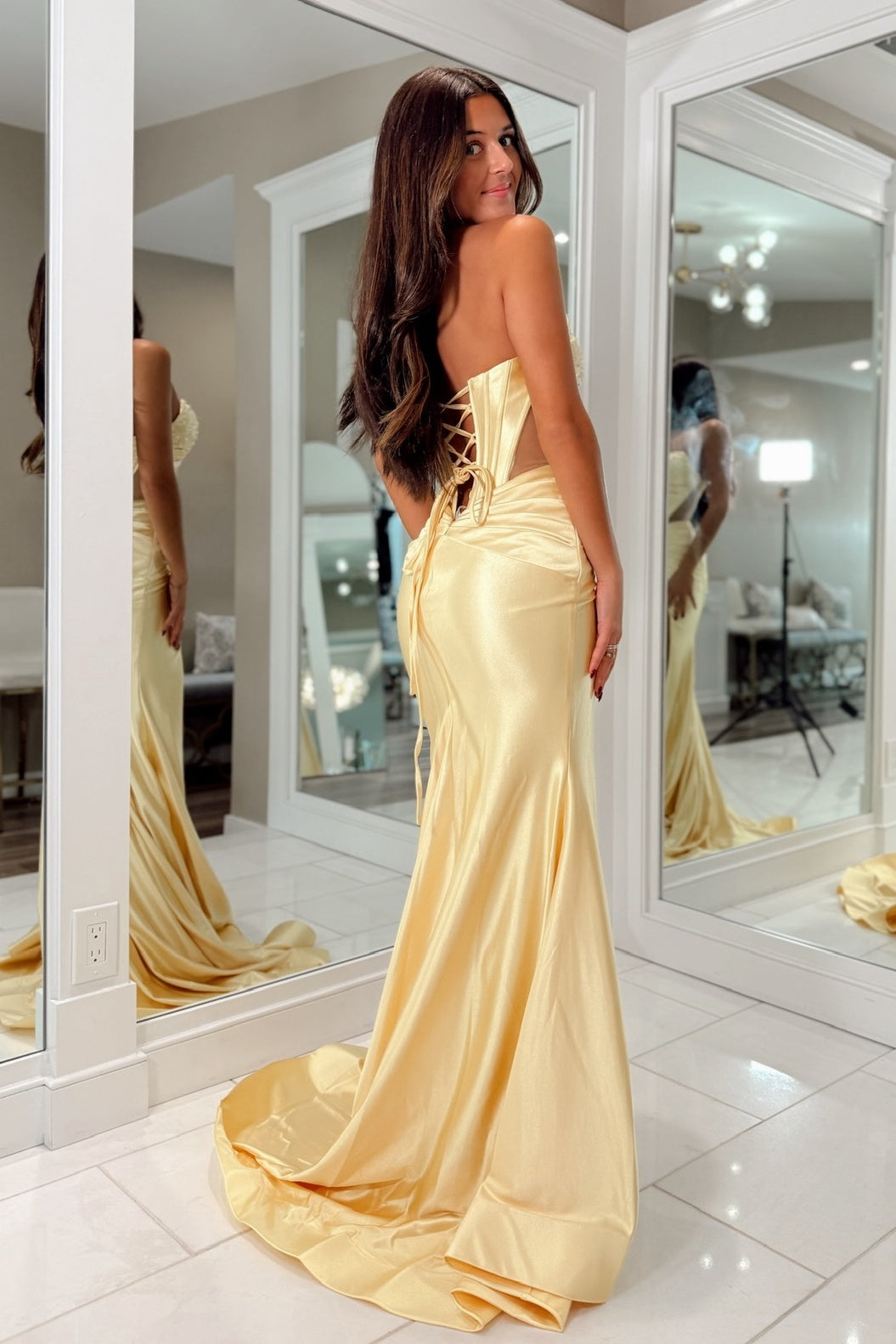 Whether you choose a standard size or custom measurements, our tailors craft each dress to order.