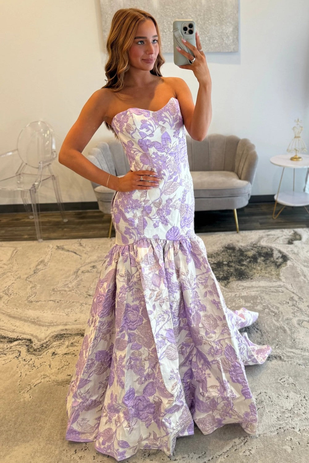 Stunning Mermaid Sweetheart Purple Long Prom Dress with Court Train