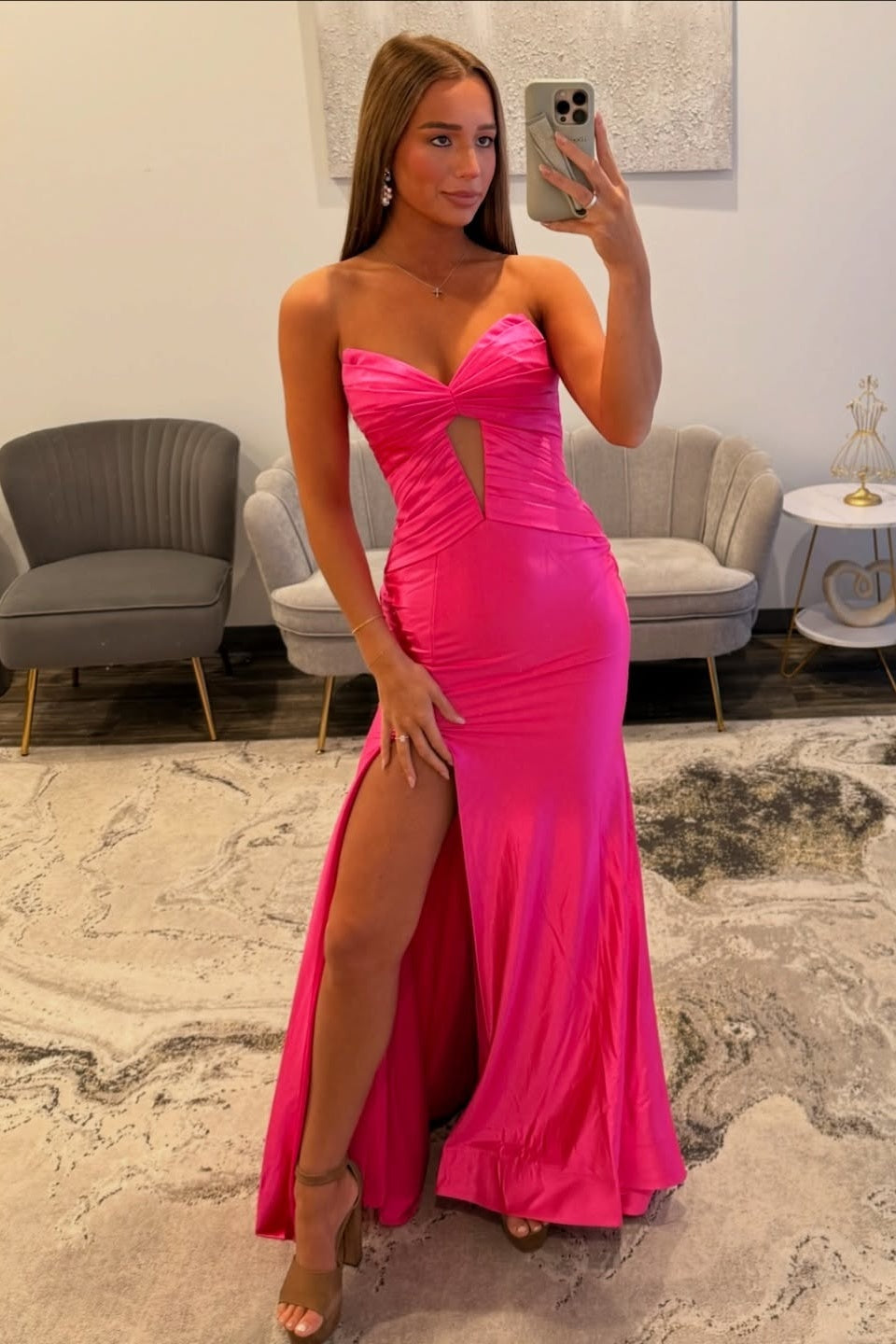 Stylish Mermaid Sweetheart Hot Pink Long Prom Dress with Keyhole