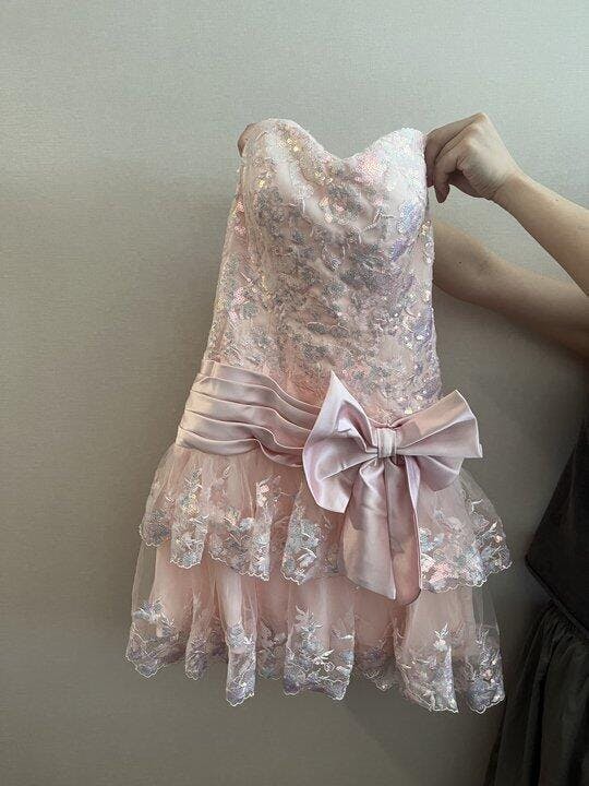 Sweety Sheath Strapless Pink Lace Short Homecoming Dress with Appliques Bowknot