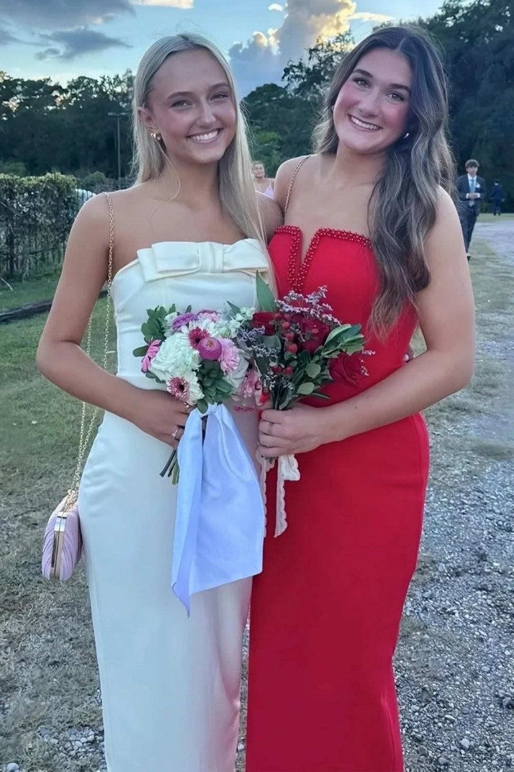 Sweety Sheath Strapless White Long Prom Dress with Bowknot