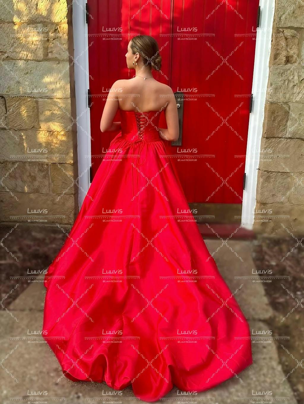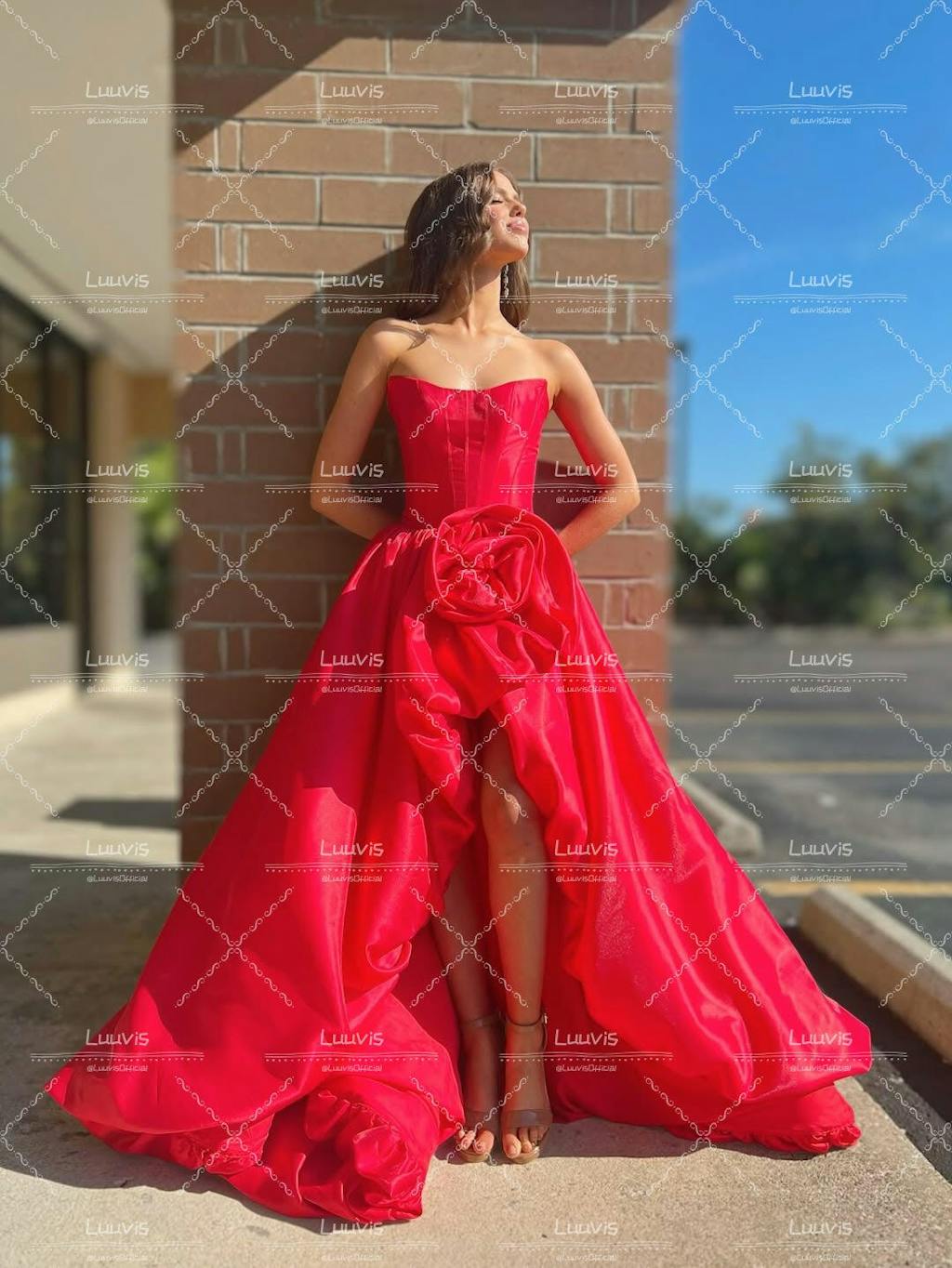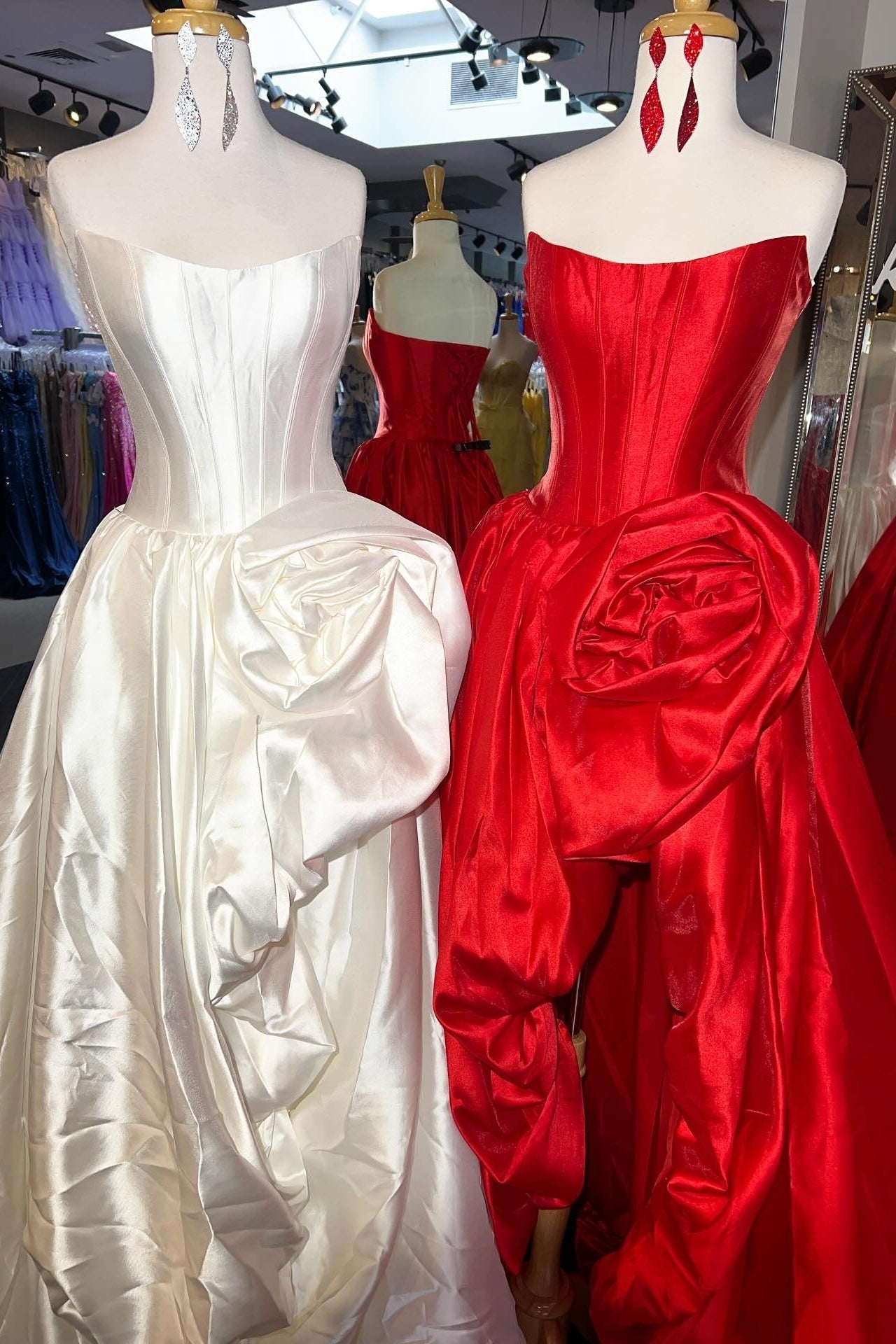 Trendy A Line Strapless Red Corset Prom Dress with 3D Flowers