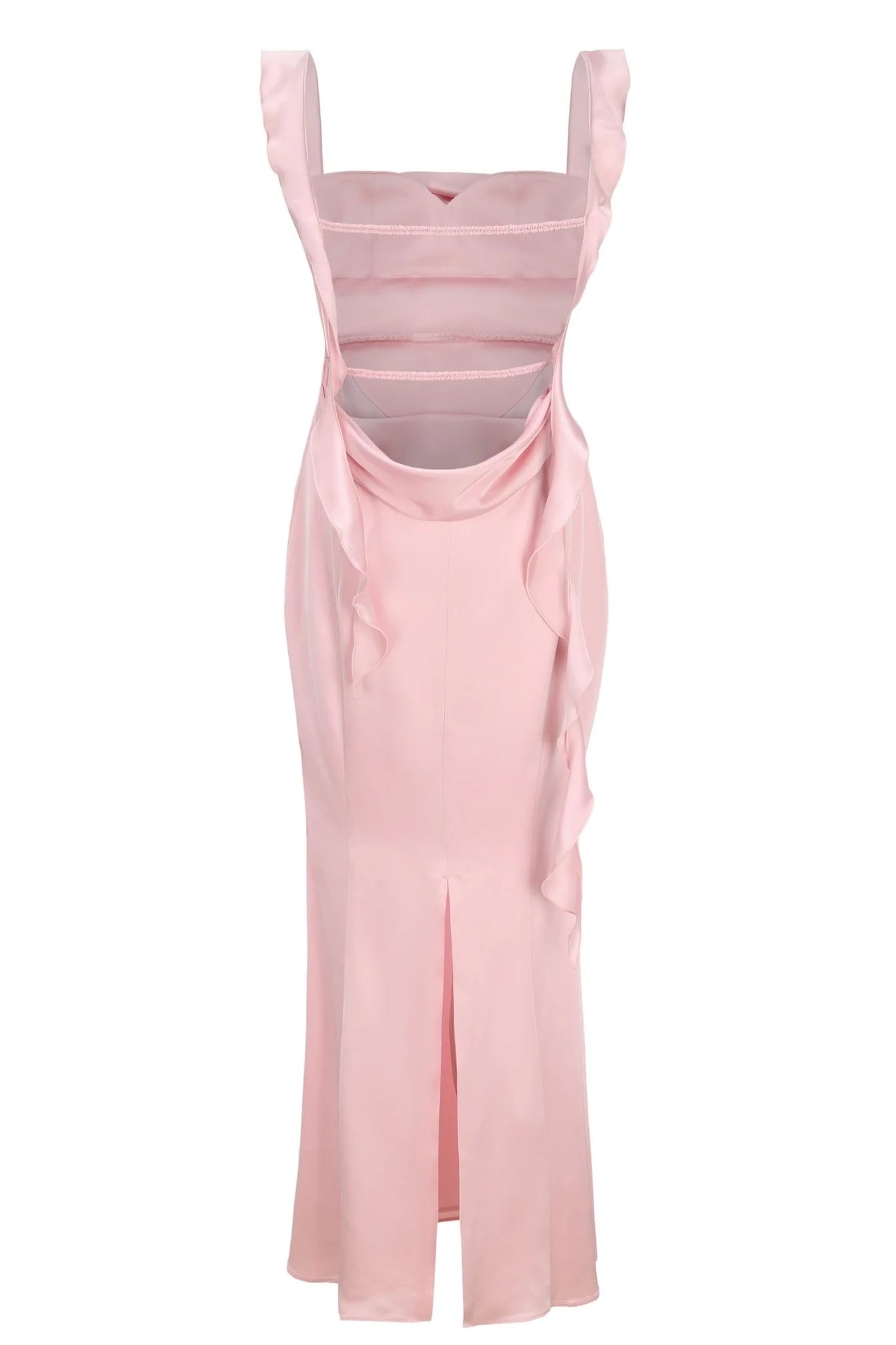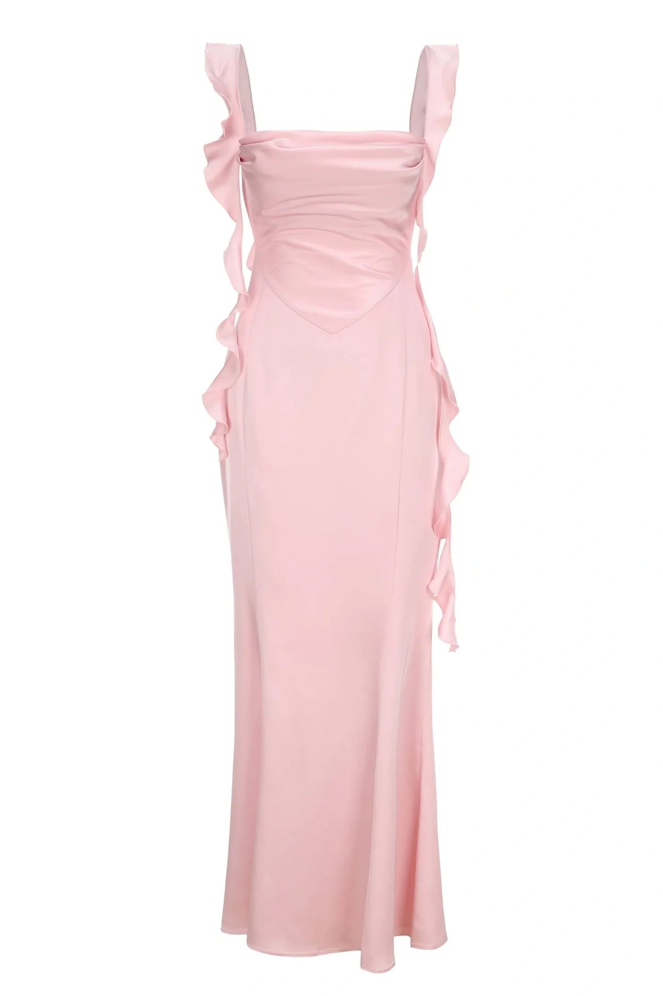 Trendy Mermaid Square Neck Light Blue Long Prom Dress with Ruffles